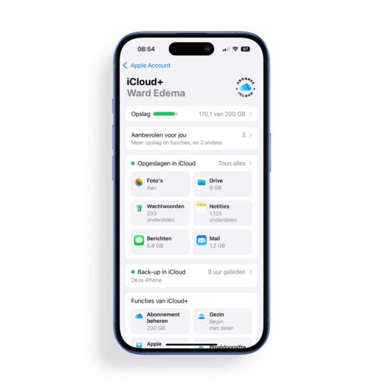 Ons advies: zet zoveel mogelijk aan, dat maakt je leven een stuk gemakkelijker! Je beheert welke programma’s gebruik mogen maken van iCloud, en welke extra features zijn ingeschakeld, via ‘Instellingen>iCloud>Opgeslagen in iCloud’ op de iPhone, en ‘Systeeminstellingen>iCloud>Opgeslagen in iCloud’ op de Mac.