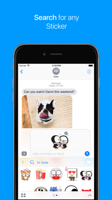Heb je geen idee welke stickers je moet installeren? Imoji Stickers is een volledige bibliotheek met stickers zodat er altijd wel iets passends te vinden is. Gelukkig heeft de app een zoekmachine. Nog niet gevonden wat je zocht? Je kunt hiermee ook stickers maken van je eigen foto’s.