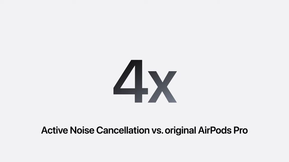 • Actieve ruisonderdrukking is verbeterd: 2x beter dan bij de AirPods Pro 2, 4x beter dan originele AirPods Pro