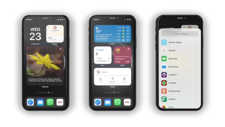 Natuurlijk heeft ook Apple widgets. Bijna elke app van Apple heeft er een, zoals Agenda, Foto’s, Herinneringen, Kaarten Muziek en Opdrachten.