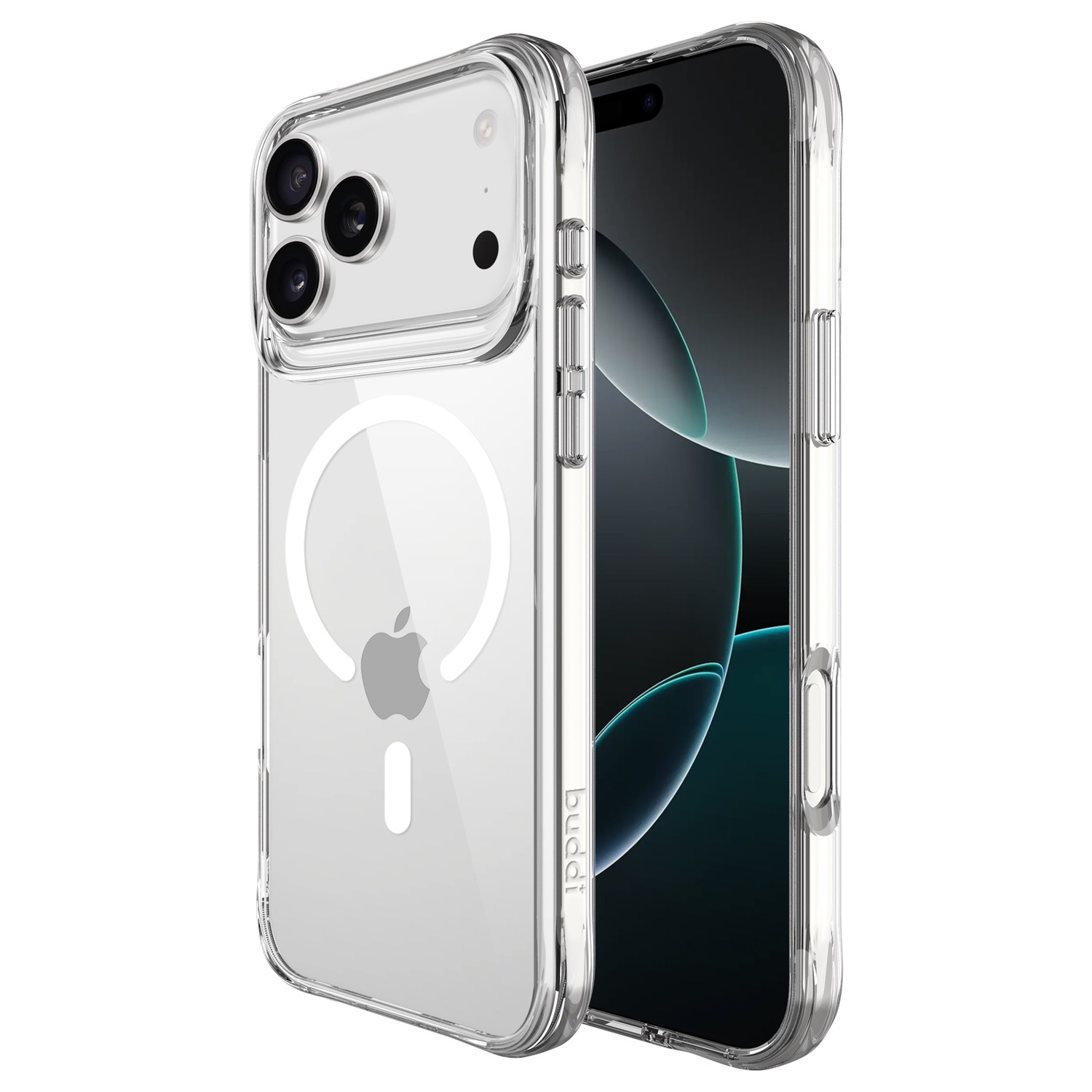 De schokabsorberende hoeken vangen impact op en minimaliseren schade, terwijl de ingebouwde magneet compatibiliteit biedt met alle MagSafe-accessoires. Het slanke, lichtgewicht ontwerp maakt de Buddi Core een ideale combinatie van functionaliteit en stijl.