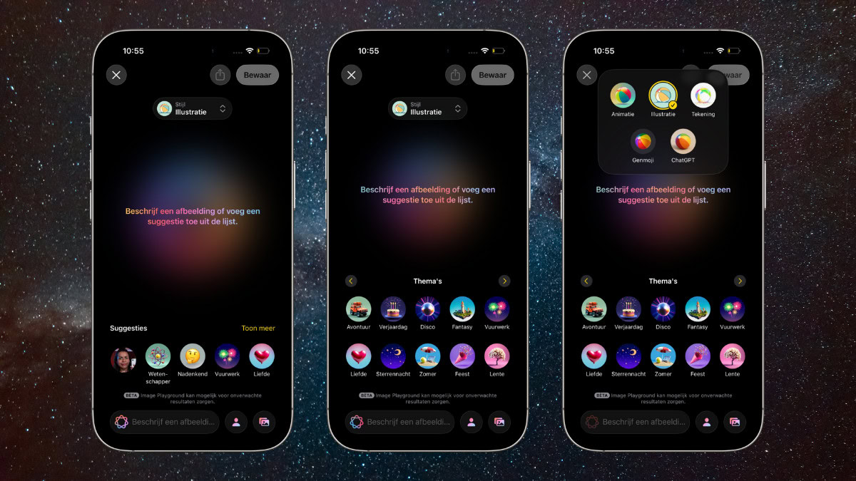 Ook de Image Playground maakt zijn debuut in de Lage Landen. De app was al even te gebruiken in het Engels (en met een omweg werkte dat ook in Nederland), maar nu kun je er eindelijk in het Nederlands mee aan de slag. Dat is reden voor een feestje, want in Image Playground kun je al jouw fantasieën kwijt.