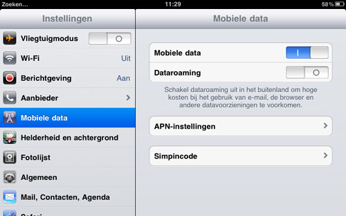 de ipad ziet de simkaart wel ik ziet dat hij 3g weergeeft