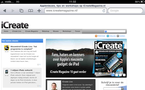 Stap 8: Open Safari en bezoek www.icreatemagazine.nl…. de 3G-verbinding werkt!