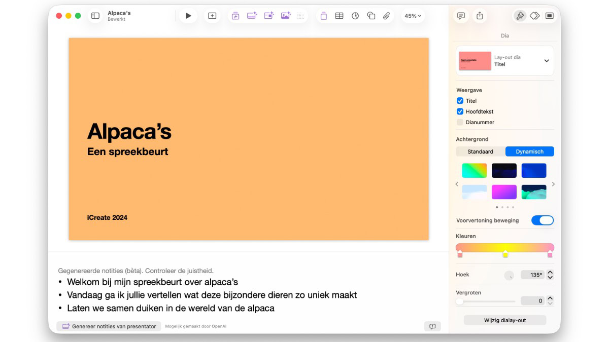 - Genereer automatisch notities van de presentator op basis van de context in je presentatie (bèta)