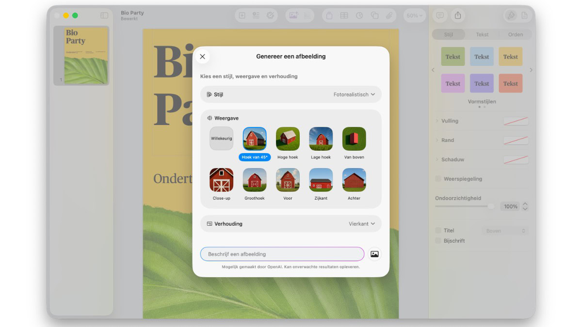 - Maak direct in je document schitterende afbeeldingen en illustraties aan, pas snelle bewerkingen toe of pas de stijl aan met AI